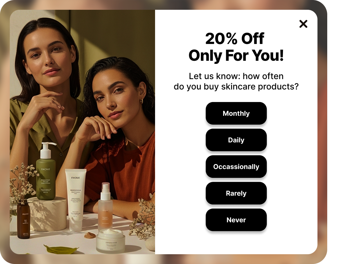 Ask the right questions and turn answers into actionable data. Capture product interest, preferences, and intent signals directly in your popups.